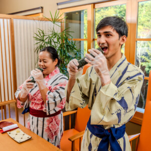 本体験では、恵方巻の文化背景を知る導入から、七種の具材を使った巻き体験、そしてその年の恵方を向いて味わう時間までを、「知る・巻く・向き合う」の三つの工程を一連で体験できる内容となっています。2026年の恵方「南南東(微南)」を向き、無言で味わう時間を設けることで、日常とは異なる節分ならではのひとときをお楽しみいただきます。